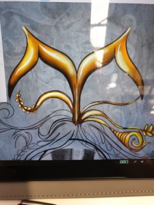 Lani took my idea and step by step, text by text, weekend by weekend, came up with her unique and beautiful picture. The gold vine looped, wove, blossomed and spun. It became a family badge, an hereditary emblem, a French ormolu mantlepiece clock.