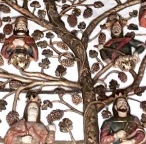 Since my book was about searching for lost ancestors, I suggested she draw something based on the ornate family grapevine of the Santo Domingo de Guzman church in Oaxaca, Mexico. The church had special memories. It was one of the places where my wife (Kate) and I had first met. We’d admired the magnificent ceiling there and its memory had stuck in my mind.
